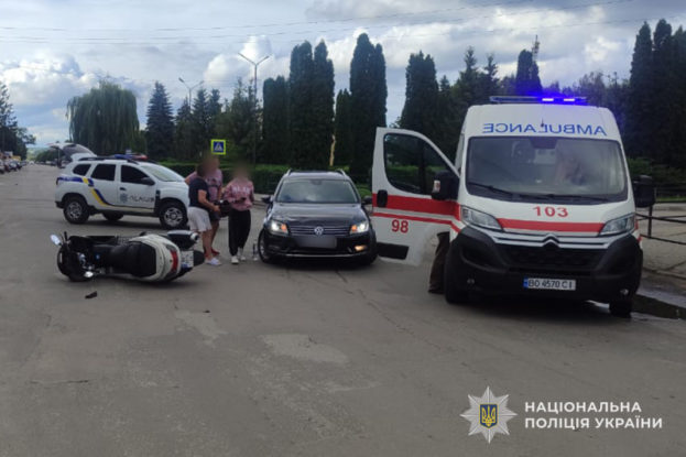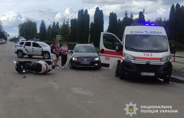 Внаслідок удару 21-річний скутерист, житель Рівненської області, з переломами та іншими травмами госпіталізований. До медичного закладу також доставлено пасажирку скутера 2006 року народження, повідомляє відділ комунікації поліції Тернопільської області.