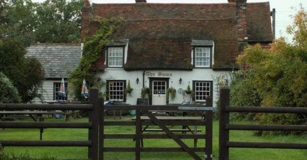 Будівля сімнадцятого століття була перетворена з багатоквартирного будинку в будинку Лебедя Ель, остаточно Дишарне село маленького Тотема в Ессексі (Великобританія)