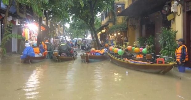На фотографіях, опублікованих державними ЗМІ, видно, що велика частина Хойану була затоплена паводком, кілька будинків затоплені до даху, а влада евакуювала туристів на човнах.