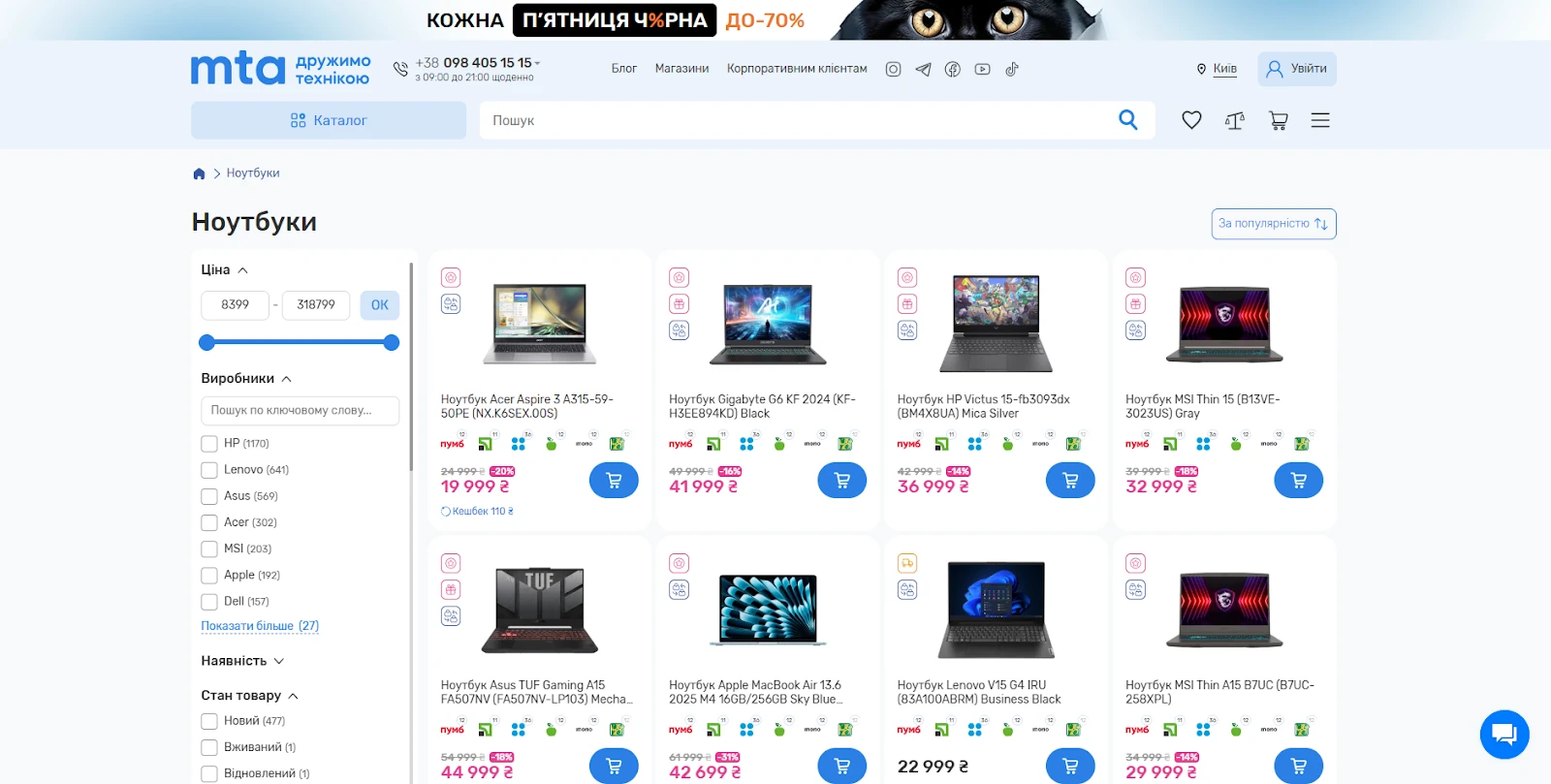 Посетите сайт mta.ua или ближайший магазин, чтобы лично убедиться, что цены на игровые ноутбуки и другую технику здесь самые выгодные.