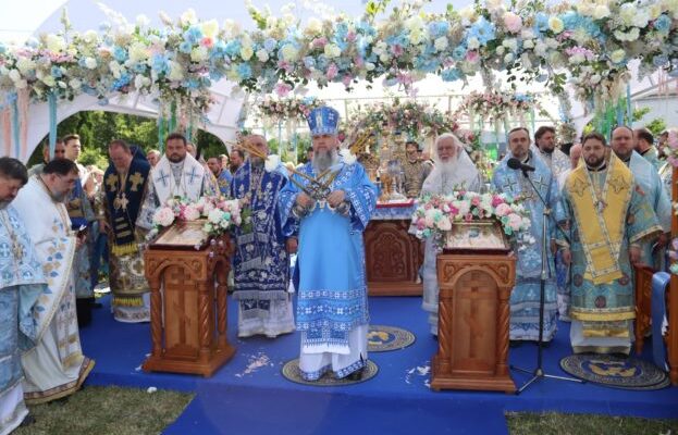 Прочитавши Євангеліє, мегаполіс Епіфаній проголосив перше стороннє слово проповіді. Під час від'їзду прохання про молитви були почуті для воїнів, які захищають Україну, для влади та нашого народу та за мир душ всіх загиблих захисників Батьківщини та цивільних людей. Після відпустки архієпископ Тіхон привітав присутніх у Великому святі та подякував усім за загальну святкову молитву. Єпископ Тіхон, особливі слова вдячності, висловив благословенне столичне епіфанію, і прихід архінів побажав усім -довіренню допомоги Пресвятої Діви Марії та надання примату букет білих троянд.
