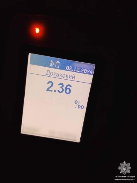 – Під час спілкування з водієм ми знайшли ознаки алкогольного сп'яніння. Чоловік погодився пройти перегляд відповідно до процедури, встановленої законодавством. Пристрій Drager записав 2,36 проміле алкоголю, – сказав патруль Тернопіль.