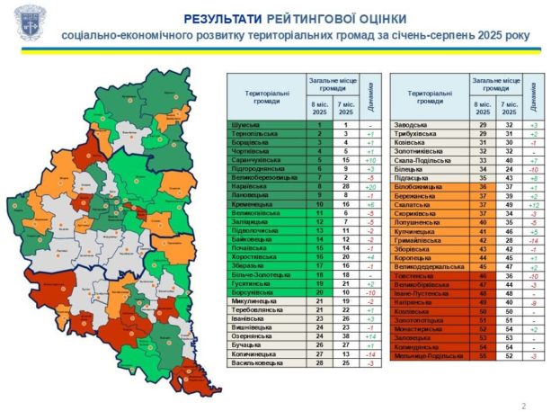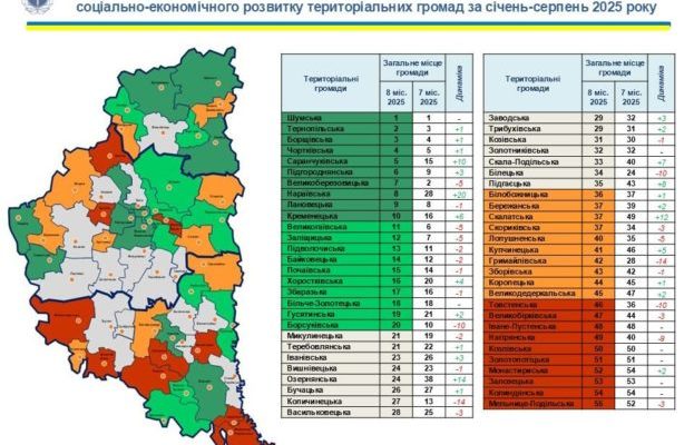 Сформовано рейтинг спроможності громад Тернопільської області за січень–серпень 2025 року. Його представив голова Тернопільської обласної військової адміністрації В’ячеслав Негода.